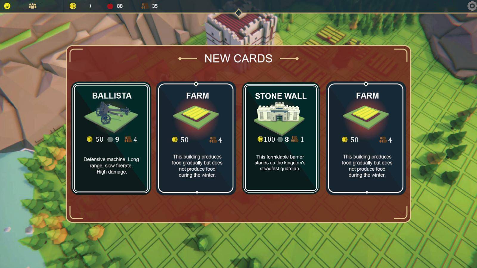 扮演国王的角色,被委以整个王国的命运。你的旅程由你的卡牌集合指引,每张卡牌都有特定的目的。一些卡牌帮助你建造关键结构,如食物生产、幸福、材料和防御工事。其他的则加强你的军事力量。你的领导力取决于明智地使用这些卡牌,在正确的时刻和地点出牌,并为最需要时保留一些卡牌。