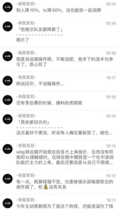 根据爆料说,其他人都是降薪10%,而theshy被降了50%,本来为了留队,theshy已经主动降薪了,结果还要被俱乐部不断压榨,两边都不让步,于是产生了这个节奏,很多网友吐槽:如果我是theshy就直接不打了。