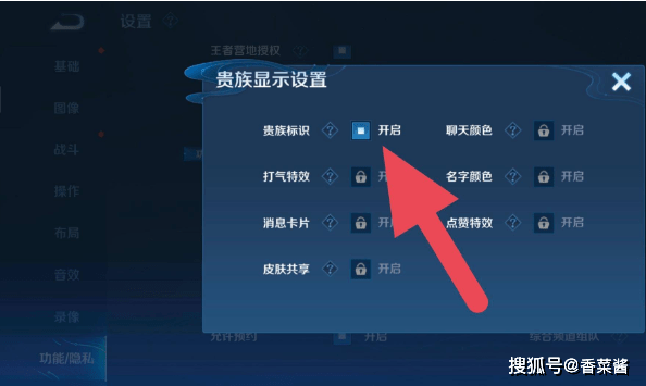 4、最后跳转出来小窗口点击【贵族标识】后方的开启按钮即可隐藏。