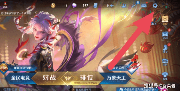 1、首先打开王者荣耀游戏进入首页面,点击右上角【设置】功能;