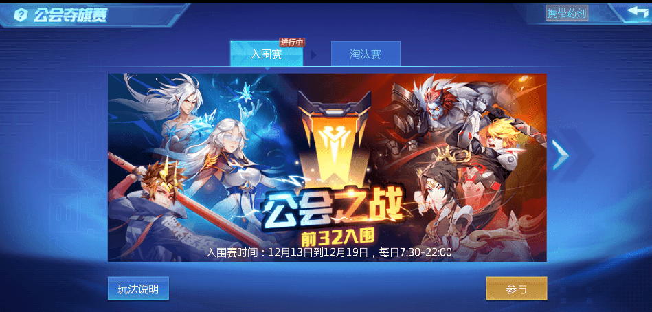 12月13日更新后至12月20日更新前,公会夺旗赛入围赛正式开启。