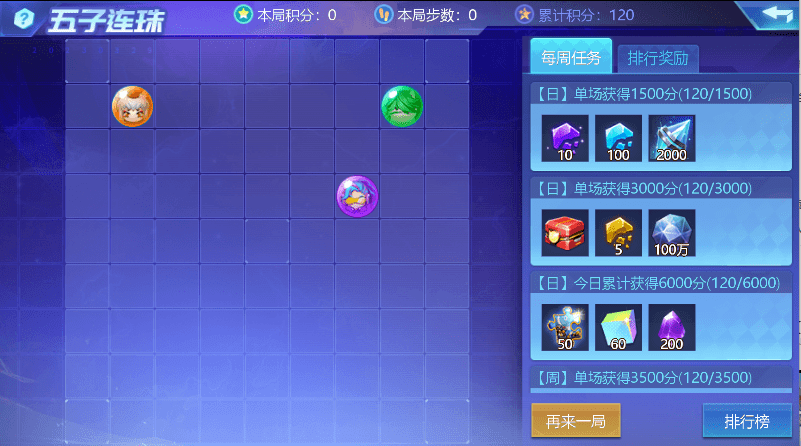 “五子连珠”玩法限时开启,移动并消除相同颜色的珠子,争取更高积分~