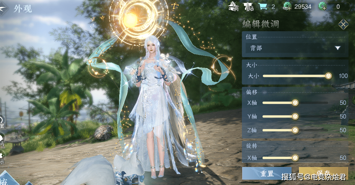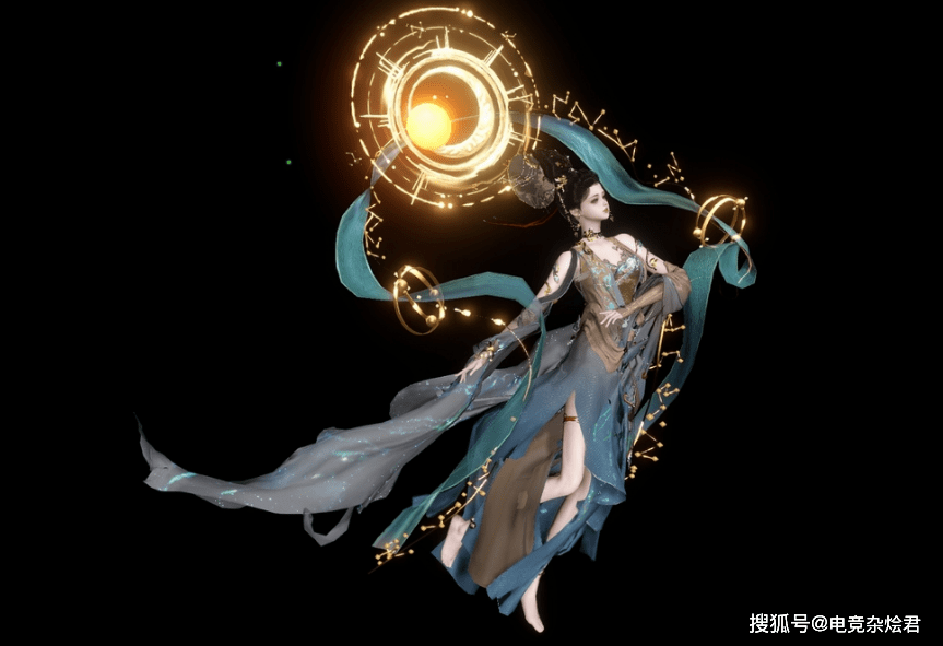 再加上自由度极高的时装染色玩法,把天青色的白泽时装沾染上太阳神那耀眼的金色,与背后的特效则更为搭配,星河璀璨,你就是人间太阳神。