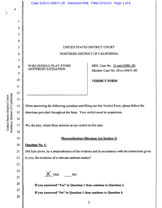 Epic在对谷歌的反垄断诉讼中取胜