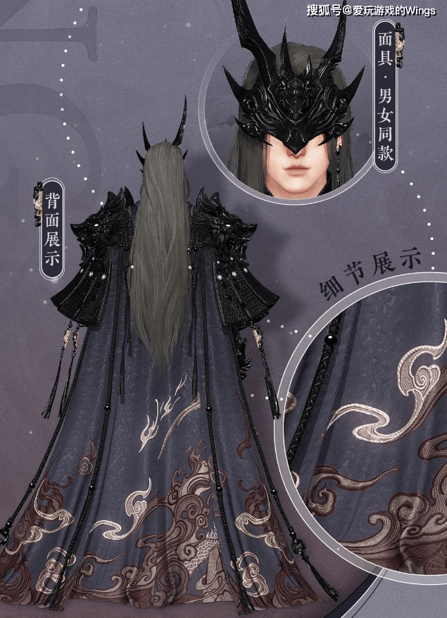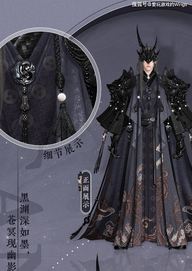 【苍冥玄渊】可以说是近期非常能打的男款时装,一身玄色搭配观感舒适度极高的渐变处理让这套时装高级感满满。虽然走的是黑暗风但却没有杀马特般的违和,更多的是给人一种庄严肃穆且大气的感觉。肩头覆以兽面肩甲搭配半脸面具酷炫度拉满,宛如降世的魔尊让人感到心悸。