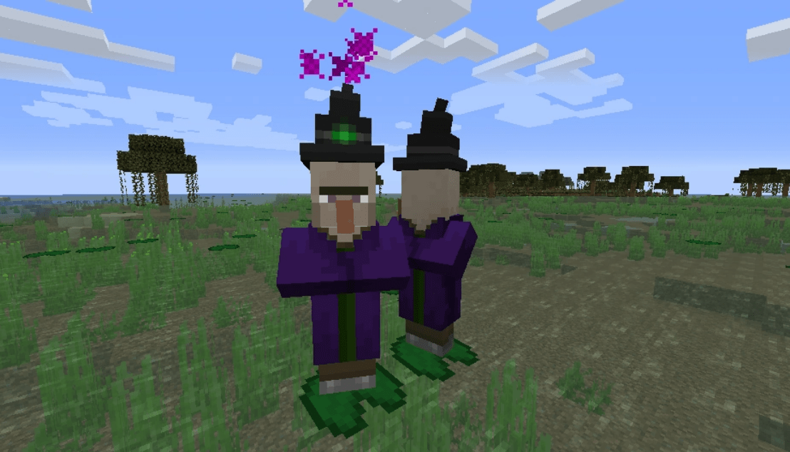 2、女巫:Dinnerbone表示想让Minecraft的女巫脱离人们传统认知下的女巫,让她变得更像是“背叛村民”的一种。于是大鼻子女巫就诞生了。