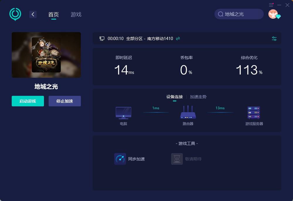 然后、加-速完成后即可获得一个稳定的网络连接,就能启动畅玩地城之光:永恒初心