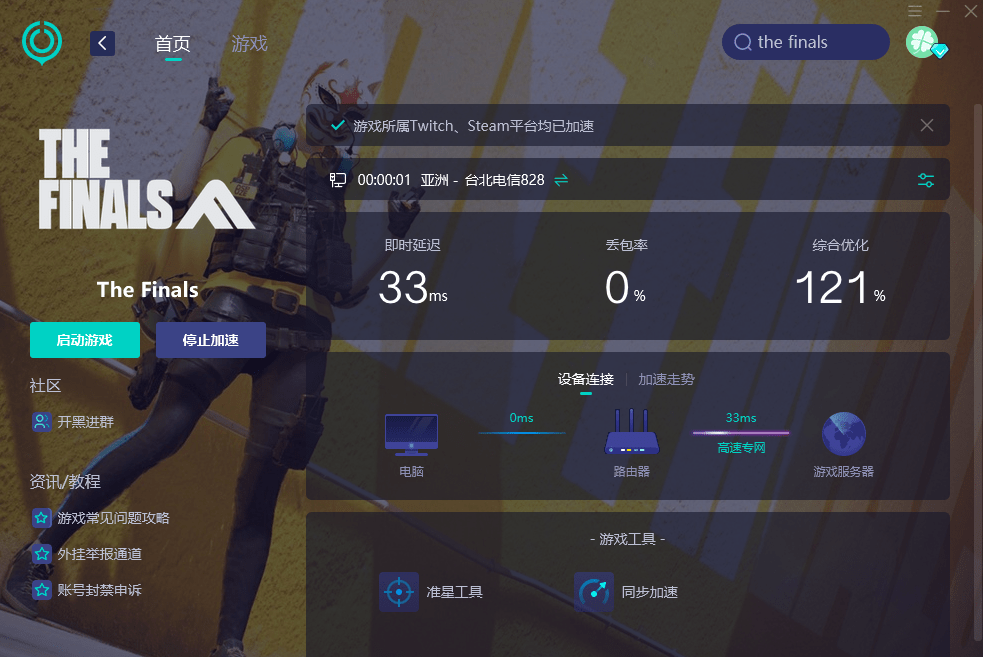 二:加-速后即可获得稳定网络连接,畅玩最终决战thefinals