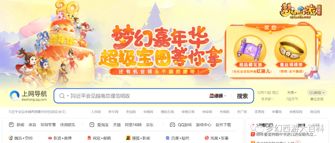 好家伙,梦幻都多少年没上过导航网站首页了?这波一上就是整个背景板,看来王姨宣传部门是真的走心了啊(上导航首页不奇怪,牛啤的是梦幻这上的是扣扣浏览器的导航首页这才是真正的通天排面啊!)