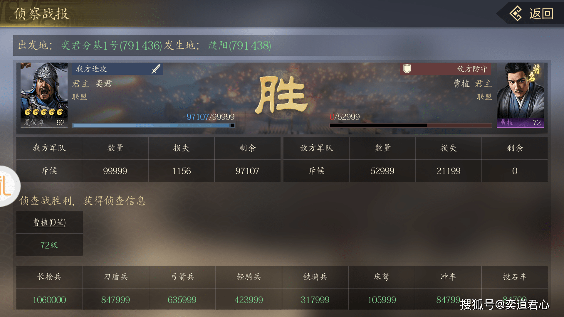 利用符咒把孙尚香的状态调整好,之后可以带兵去支援一下其他据点。夏侯惇带着斥候部队把濮阳刺探了一番,发现驻守城中的人是才高八斗的曹植。不过这兄弟的才华都在敲键盘上,带兵守城就算了吧。孙尚香带着现成的10万投石车部队,开个加速计谋就能瞬息赶到。