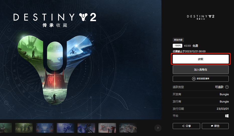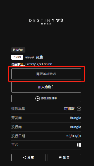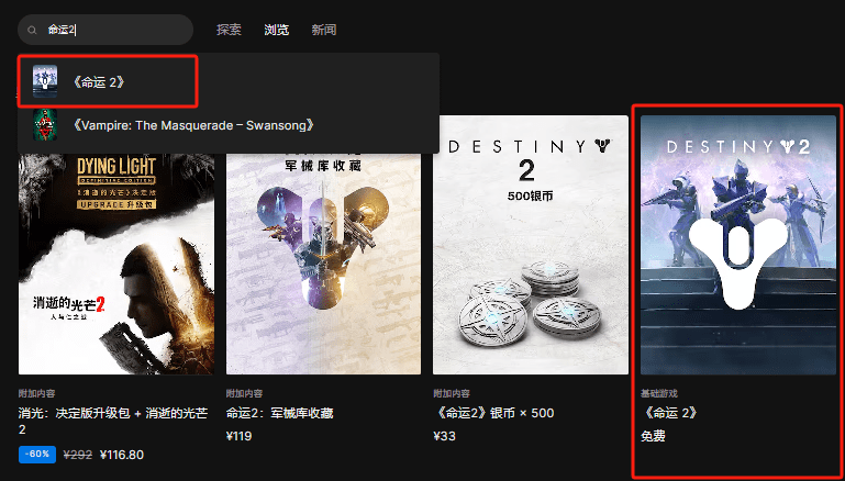 Epic喜加一领《命运2传承收藏》需要基础游戏/领取不了教程