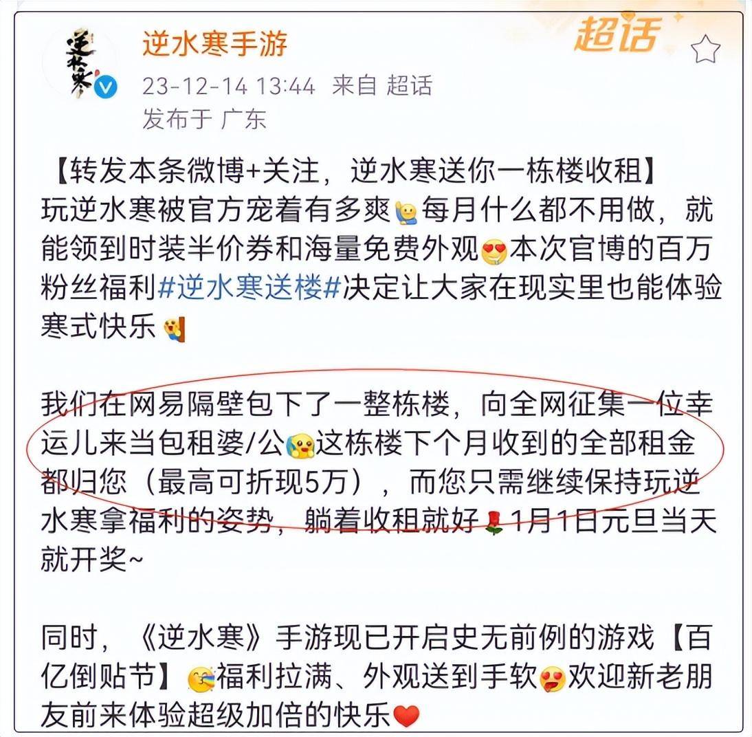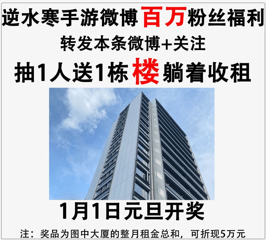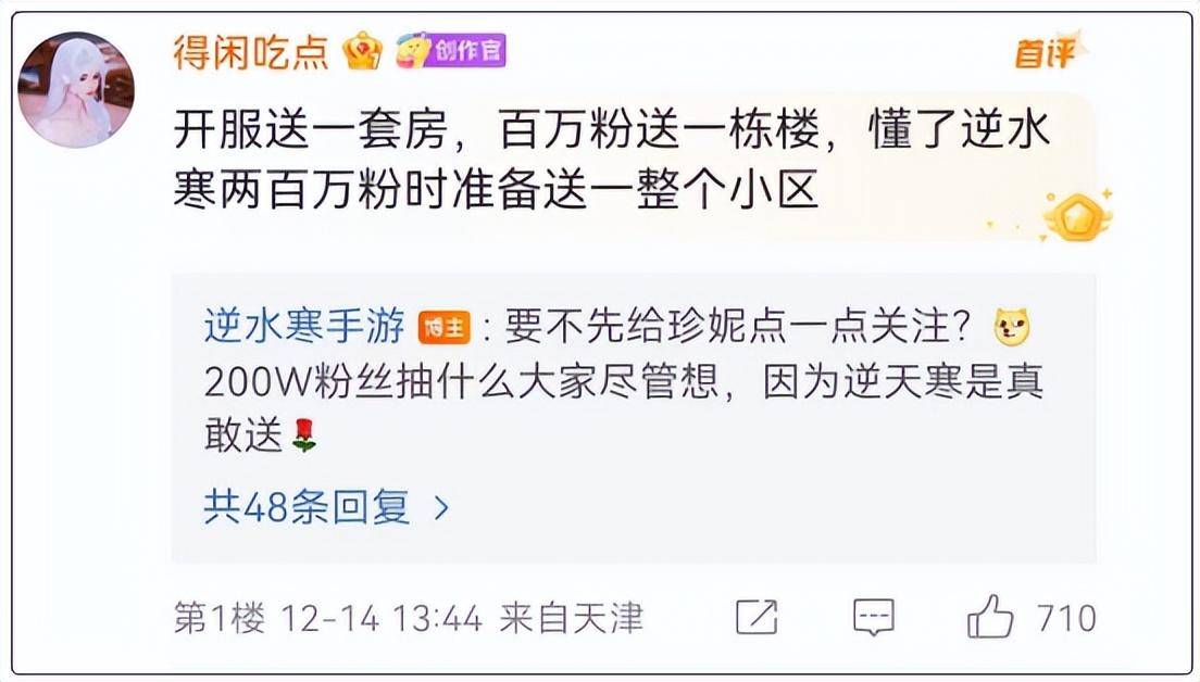 最开始,玩家也是觉得100亿元肯定是画饼,没想到网易来真的,第一波福利就惊掉人下巴——为了庆祝其微博粉丝突破100万,他们居然要送人一栋楼?