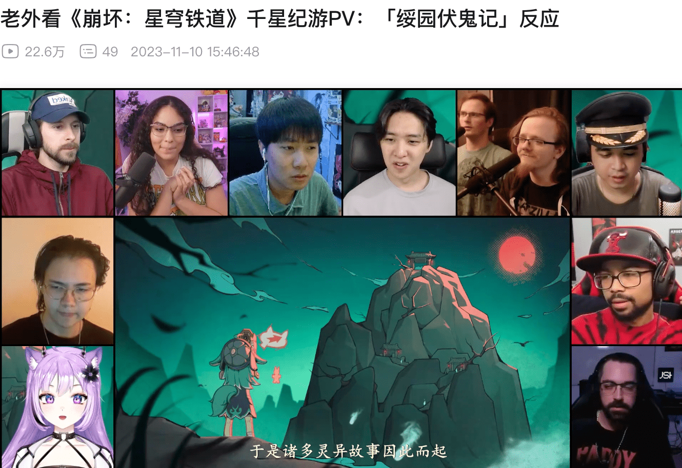 比如说藿藿的PV「回魂夜」,国内玩家一看到这个名字,是不是马上想到了各种各样的灵异故事?但国外玩家并不理解“回魂夜”的意思,只能通过PV画面来了解,而星穹铁道的动画制作精良,展现了道教文化中的画符、捉鬼,国外各主播看得眼睛都快瞪出来了,还直言这是来自东方的神秘力量。
