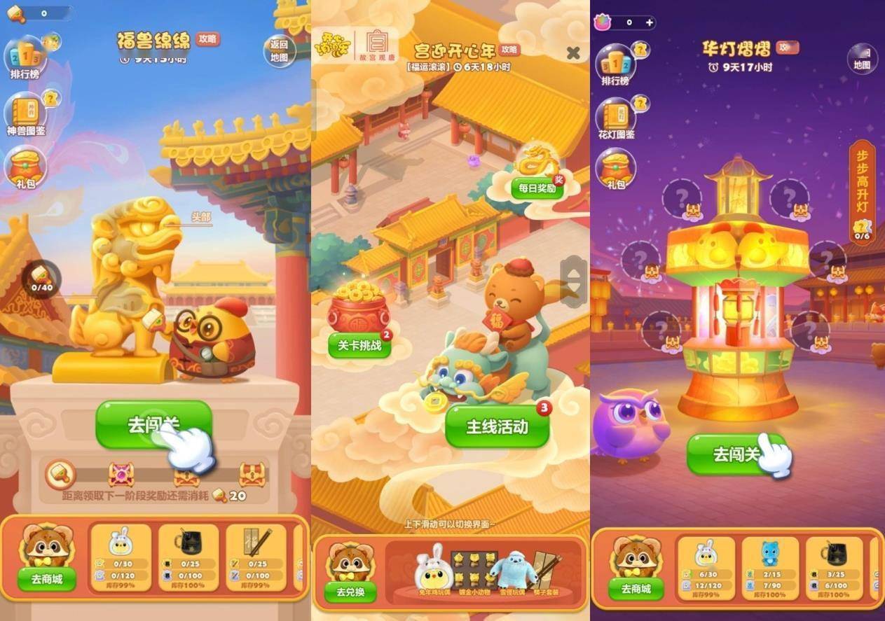 在2023兔年春节中,《开心消消乐》携手故宫观唐,开展故宫主题活动。在第一阶段活动“福兽绵绵”中,《开心消消乐》选择太和殿上的屋脊兽切入设计。玩家通过闯关,亲自体验修复师们修复祥瑞神兽的过程,从而对这些融合了宫廷建筑艺术与传统祥瑞文化的神兽产生更具象的认知。