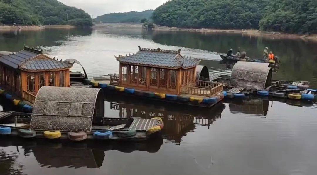 柳鱼湖位于薛礼城的三生瀑布前,占地一百余亩。一条条金色的、红色的鲤鱼雀跃着欢快畅游。它们像烟波浩渺世界里的凌波仙子,水阔凭其跃。从码头登上红色的乌篷船和画舫船,随船儿在湖面上徐徐前行,望着远处的山和近前的水,还有这湖中成群结队的锦鲤,心中是一番别样的欢喜。那山峦投射在湖面的倒影,似一幅巨大的水墨丹青,世间无人能画。一队调皮多疑的野鸭子排列有序,听见有人过来,立刻扑棱开敏捷的双翅一齐飞奔柳鱼湖。湖面一条长长的人字型弧线在其身后旋即消失,水面又恢复了平静。