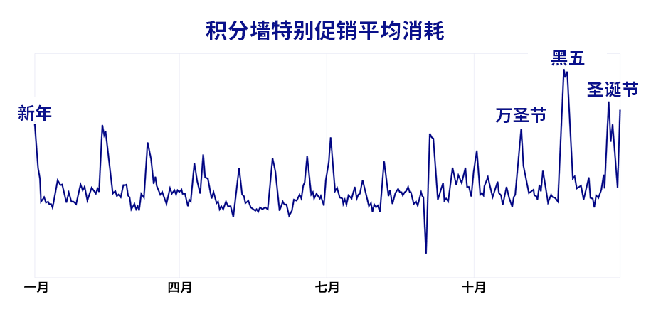 凭借着更丰厚的奖励,积分墙特别促销活动吸引了更多的用户完成任务;而节假日期间的流量高峰则能够锦上添花,为营销效果再添助力。数据显示,节假日期间的积分墙特别促销平均消耗是一年中最高的。