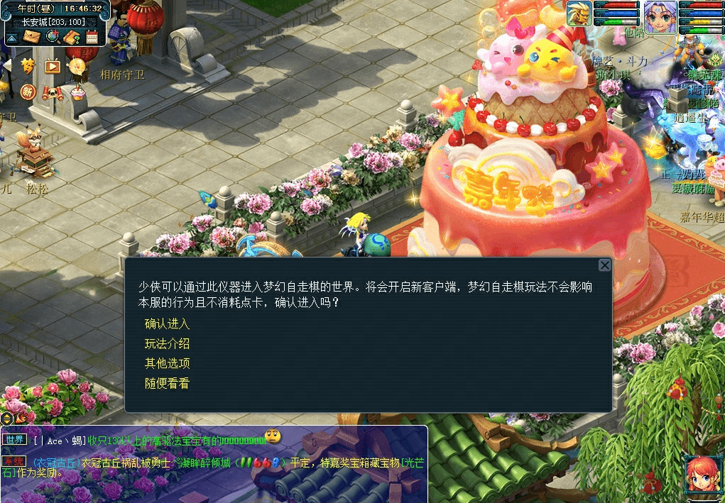 2.前往自走棋天机仪(长安城203,100),对话后传送至自走棋玩法中。