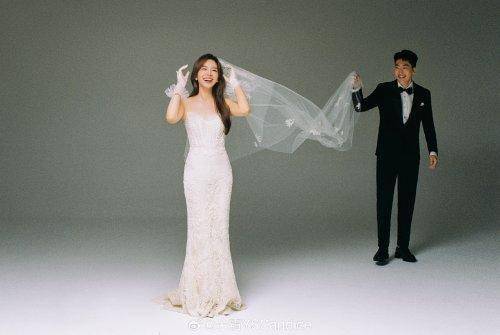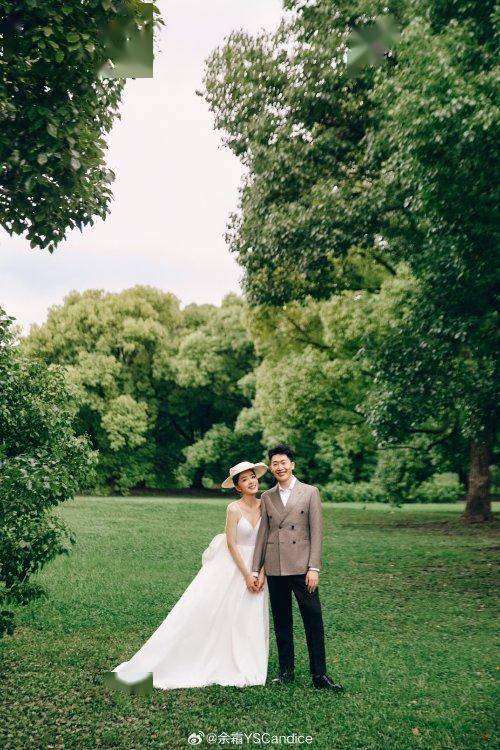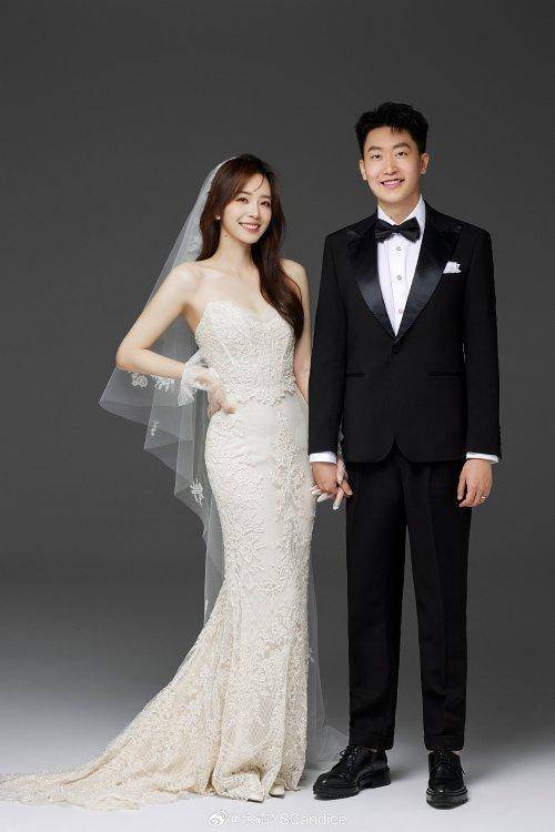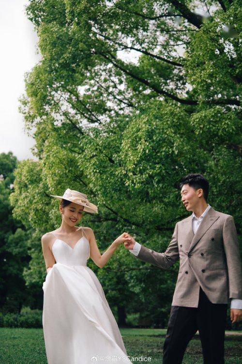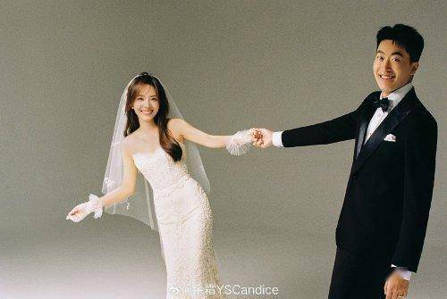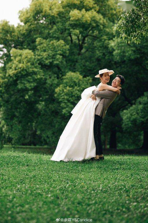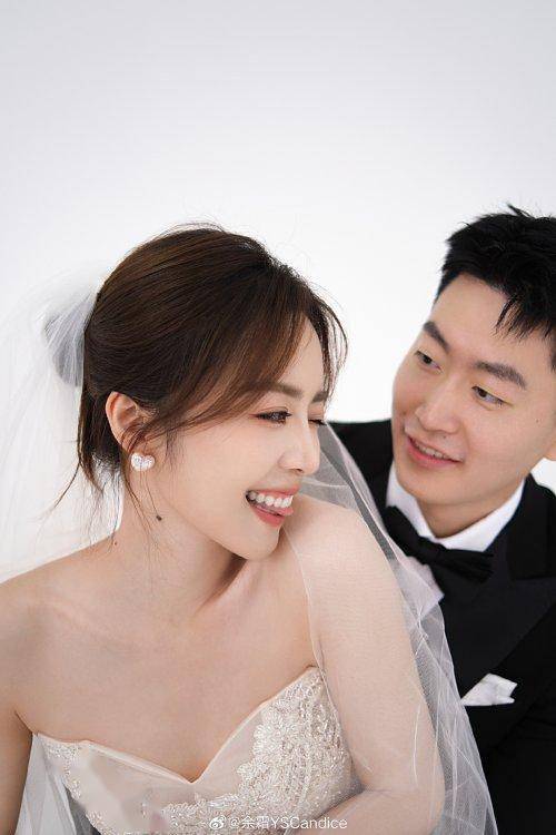 原标题:《LOL》主持人余霜分享同管泽元结婚照 好美好甜!