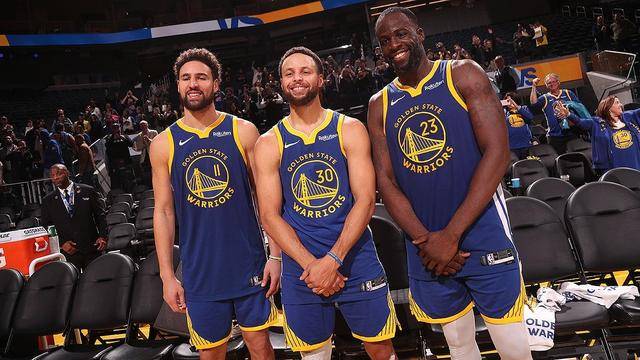 勇士队库里、克莱与德雷蒙德格林