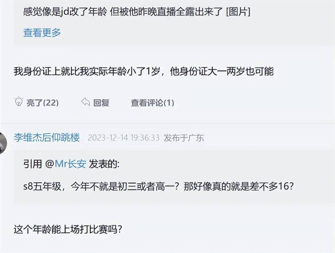 s8还是小学五年级,那么s12应该是初四,s13高一,的确跟他说的消息对上了。这样看来,sheer的年龄应该没有涵艺说得那么大,因为大部分人都是高三才18岁的,这位小上单可能是16岁左右,才上高一的年纪。