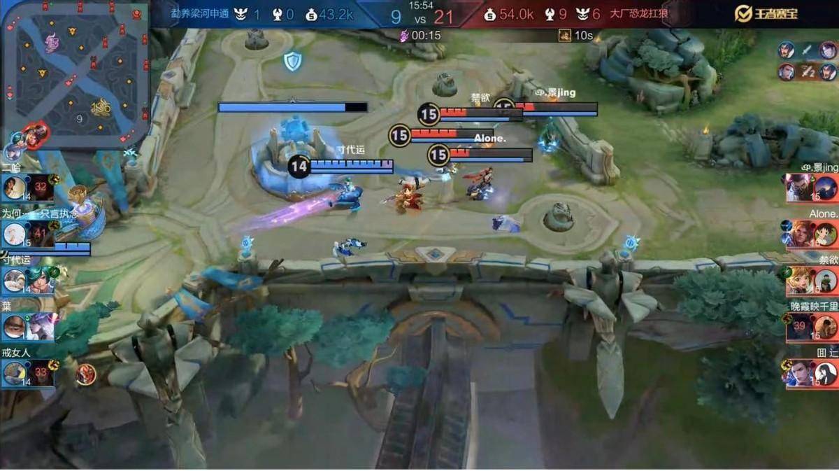 当日首战,来自大厂赛点的恐龙抗狼战队对战到了来自勐养赛点的梁河申通队,在前两局的对抗中,两支队伍之间爆发了较为激烈的对抗,并在两小局比赛中均鏖战至20分钟+才分出胜负,直到进入第三局比赛,大厂恐龙抗狼掏出了孙膑、孙策、兰陵王这套强开团阵容,并在前中期利用野区牵制对手,拿到巨大经济优势后,仅仅十六分钟就将勐养梁河申通战队击败。