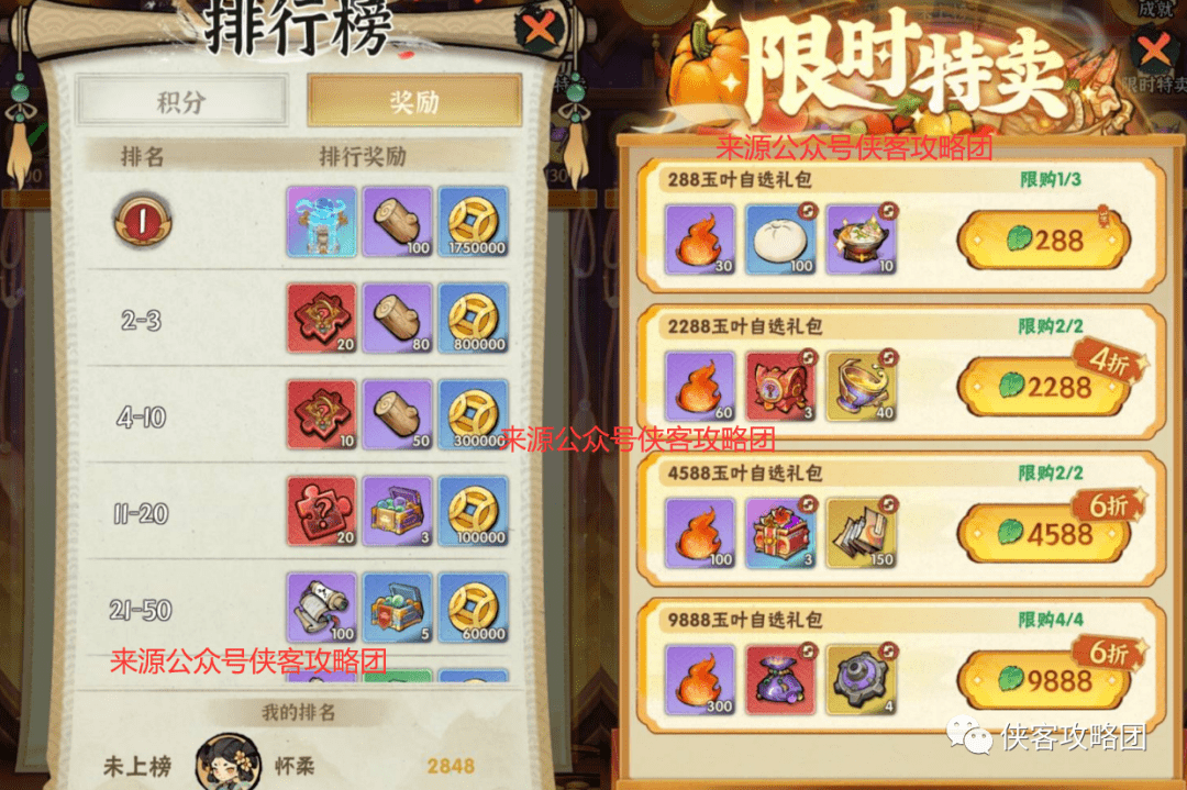 6,所以争排名的玩家肯定要花叶子了,四种道具每天重置购买次数,每天都要买满。6菜品是个极品道具他可以任意时刻释放到任意位置,建议叶子直接购买288礼包,给30火苗、100包子,10个6级菜品!氪佬玩家要争排名的,必然288礼包先买满(可以考虑后两次出烟花活动时再买来叠加包子消耗,不过目前不确定还出不出烟花)