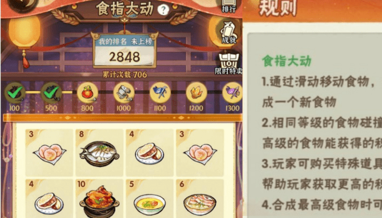 5,通过上面这条,争排名的玩家),如果用一倍速玩,可以先放置两个6级菜的道具合成7再玩,直接把基础菜品变成1~2的波动。