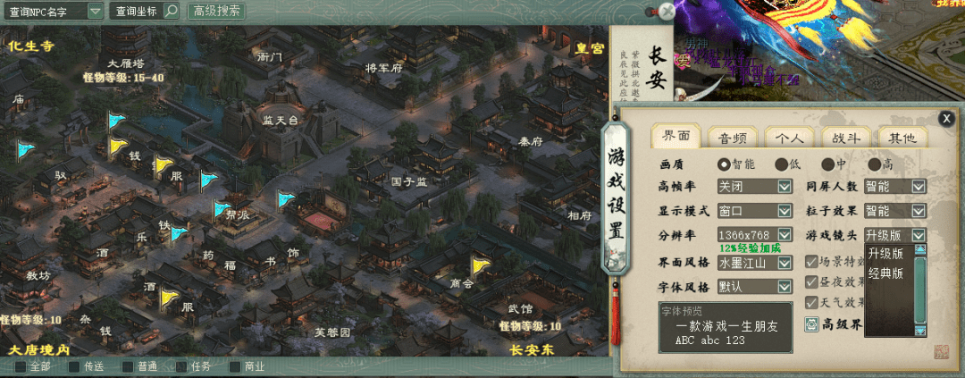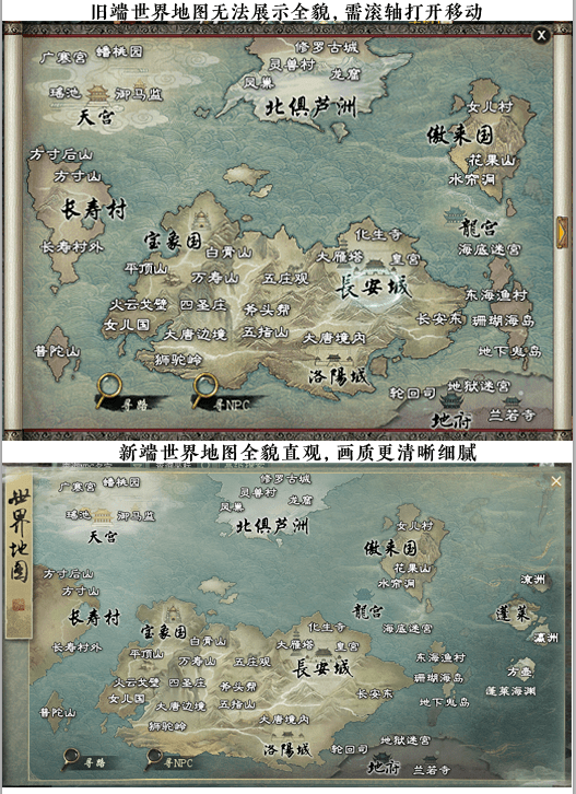 新客户端的分辨率优化为1366X768,相较于旧客户端的1024X768,这意味着我们玩家在游戏中能够拥有更广阔的视野。这样的提升使得我们能够看到更多的细节和景象,提高了游戏画面的质感,能更快地发现NPC。