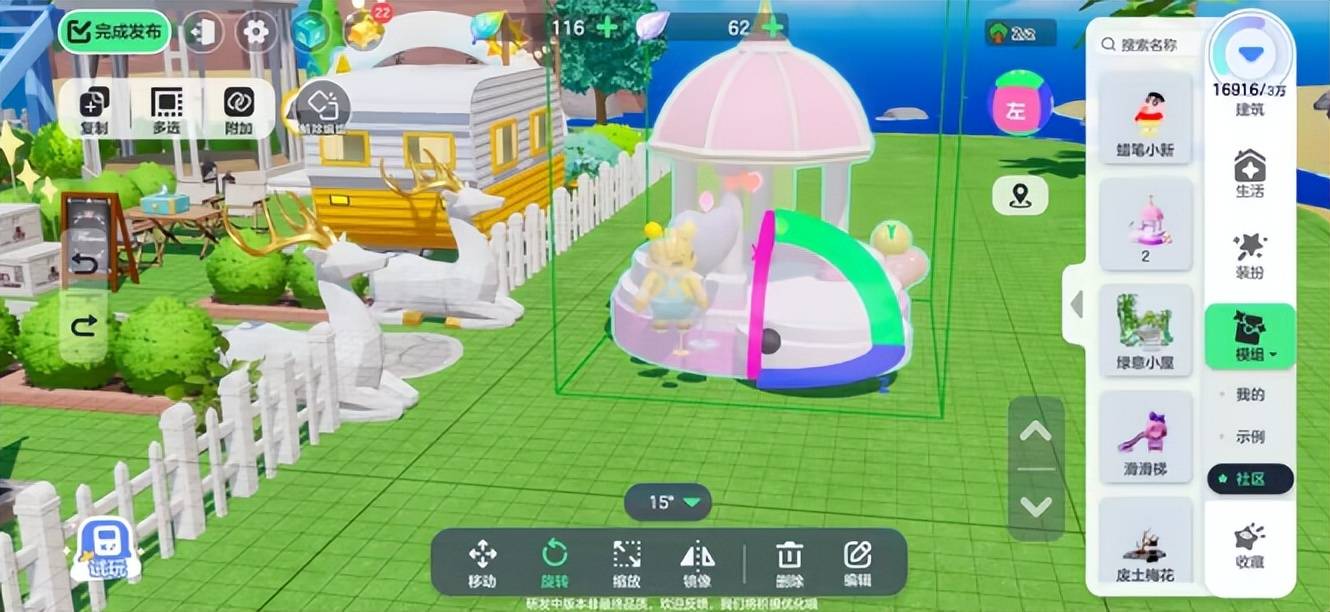 游戏中还有各种主题的场景,比如海滩、森林、城市、冰雪等,玩家可以在不同的场景中欣赏不同的风景,拍摄不同的照片,分享给其他玩家。游戏中还有各种活动和任务,可以让玩家获得更多的星钻和奖励,提升自己的等级,解锁更多的角色和装扮,打造自己的专属乐园。