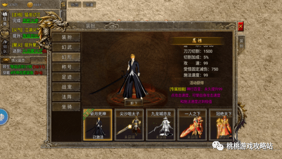 包含了一个十分帅气的“斩月死神”幻形套装,外表十分的好看呀,和我们的传奇手游融合起来别有一番风味呀,给我们玩家的游戏角色提升的属性也是十分的给力,还有一个专属技能,叫神行百变,永久提升九十九点攻击速度,可以使自身的攻击速度和施法速度达到最高值。