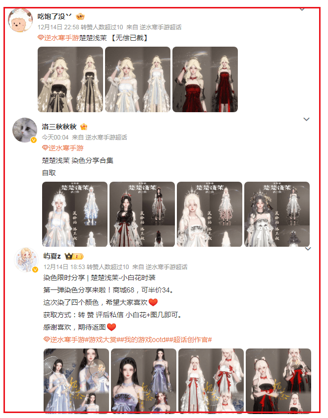 这就要说到网易旗下古风武侠开放世界《逆水寒》手游,每一次游戏推出新时装,翻看社交平台就会有大量的玩家开始疯狂安利。