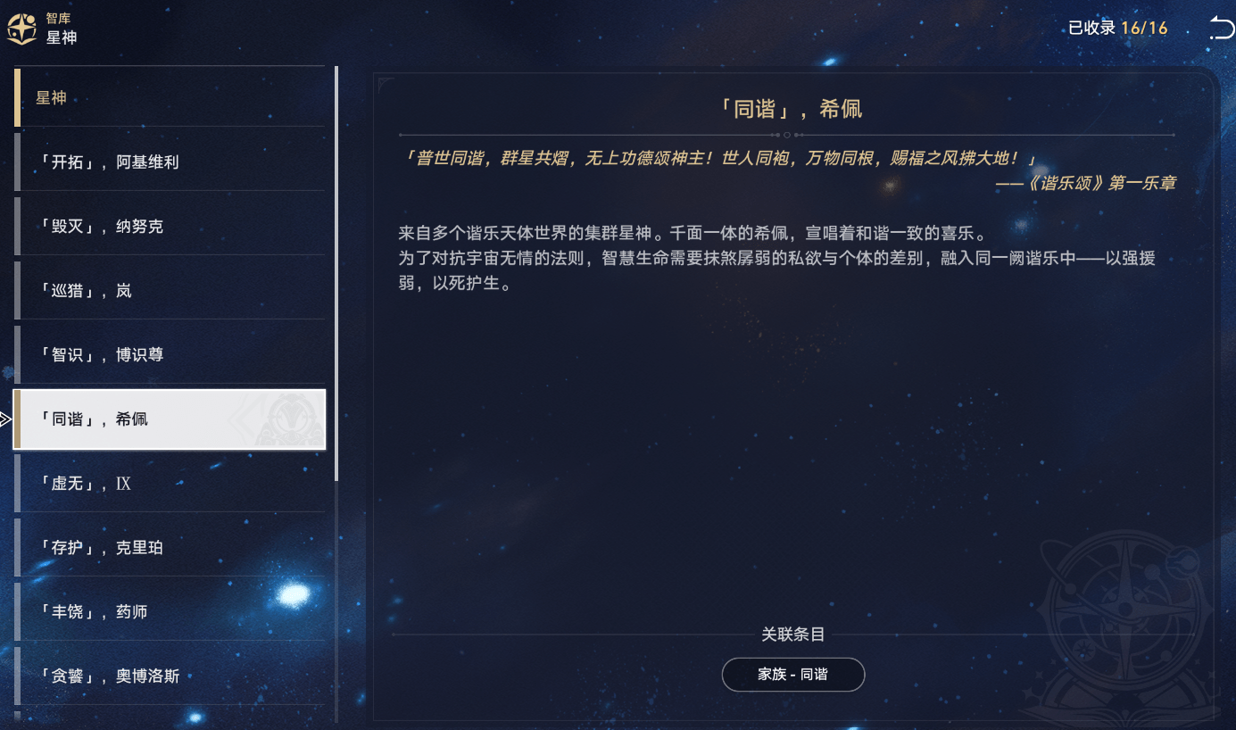 而且每个角色的命途还不太一样,除了走在“同谐”命途上的“家族”成员外,本次还有代表守护的砂金、代表开拓的姬子、代表智识的拉帝奥、代表记忆的黑天鹅、代表欢愉的花火、代表巡猎的黄泉、还有暂时不清楚命途的星河猎手萨姆以及疑似代表毁灭的冥火大公。这么多命途不同的人出现在“同谐星神”希佩降临过的地方,这很难不让人怀疑,匹诺康尼会有大事件。