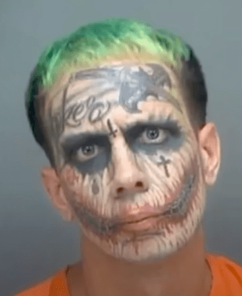 这位老哥本身是一名文身模特,以蝙蝠侠中的反派小丑自居,而且还试图在行为上进行模仿。