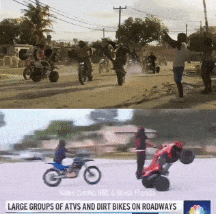 这个场景也有原型,发生在 2017 年,当时有一位紫色头发的姐姐在车顶跳舞,同时汽车正在行驶,看着相当危险: