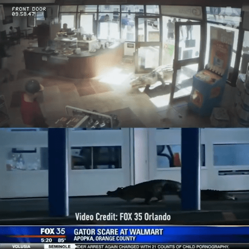 在 2013 年,确实有过一条鳄鱼试图进入一家沃尔玛超市,导致超市不得不关闭大门。