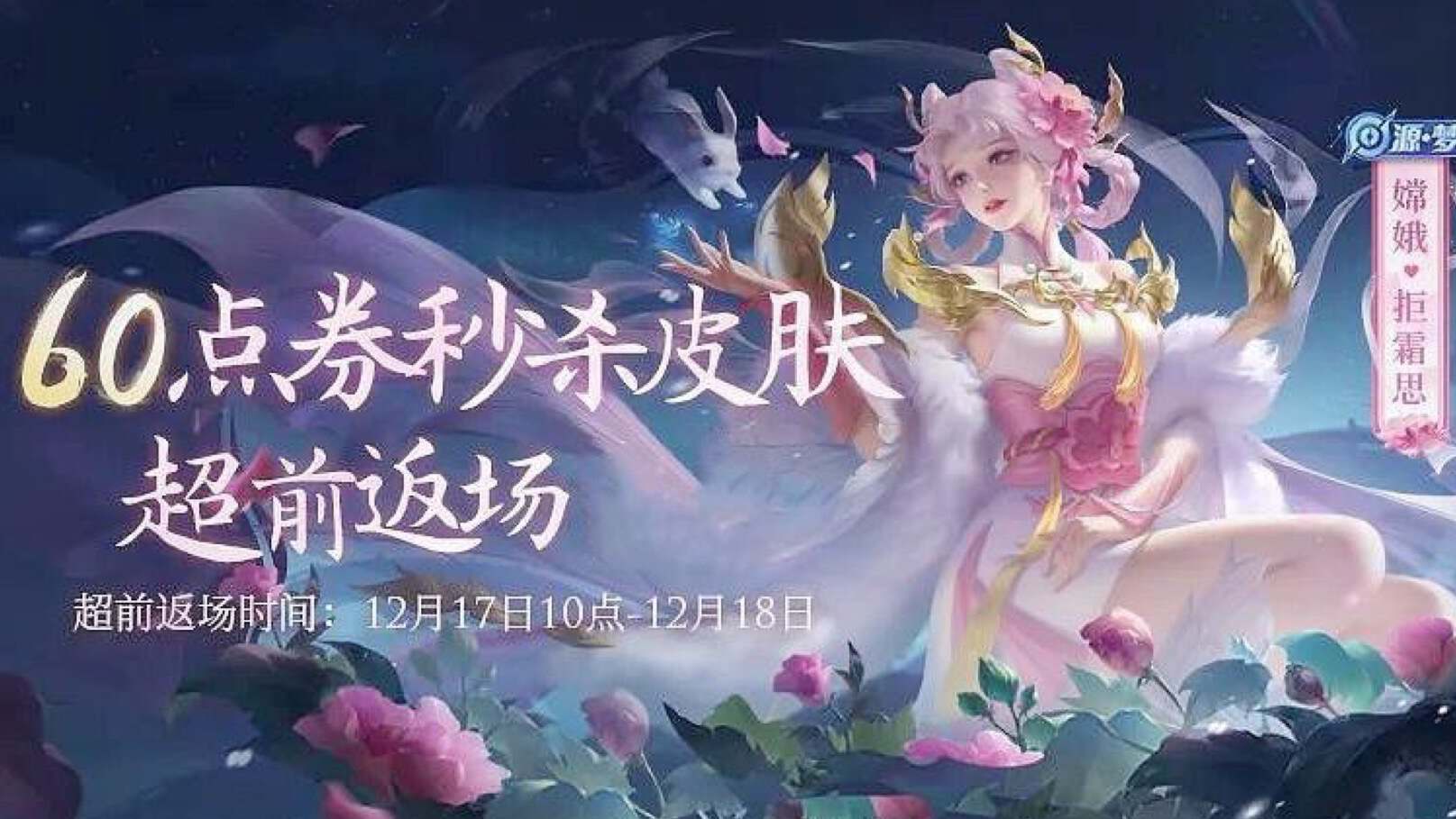 然后嫦娥的源梦皮肤在近期也迎来了返场,玩家可以通过活动提前一天购买这款皮肤。老实说这款皮肤的返场还是比较良心的,因为依旧是原价返场,只需要60点券就可以入手。
