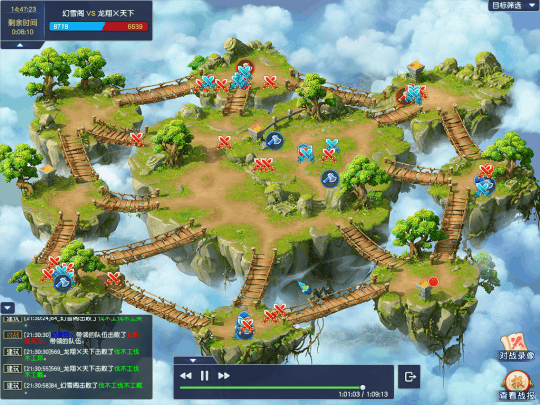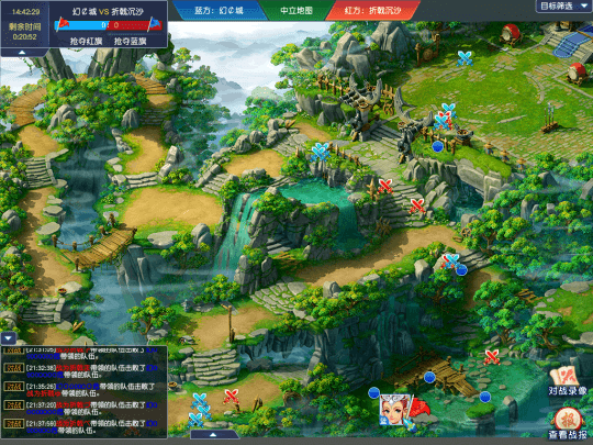 【折戟沉沙】和【幻¢城】都是今年拿下最多联赛冠军的帮派,其硬实力差距并不大。在周五建设环节的对决时,两边都进行了一定的“战术性”针对。比如,【幻¢城】帮派就将五人队伍拆成“3+2”的组合,3人小队负责伐木,2人小队负责拖延对手的伐木进度,主力队伍则驻守伐木点,保证己方伐木节奏。
