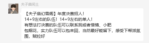 为了应对这场大战,【幻雪阁】帮派管理“闰土”更是在全服联赛群招募顶尖玩家,打算在决赛之前进一步完善自身帮派阵容。所以,本周四无论是阳光城,还是夫子庙,转服烟花的价格应该会创造新的神话。