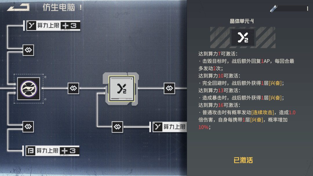 此外考虑到虹伽马2区中的专属算力提升效果还是相当不错的,所以在中后期她也是我们可以考虑投入“仿生超导体“来开伽马区算力上限的首选之一。