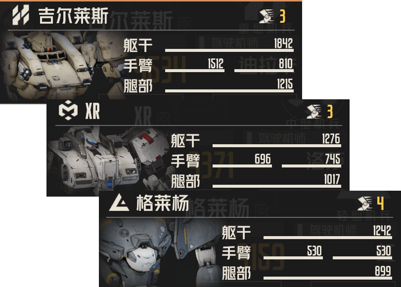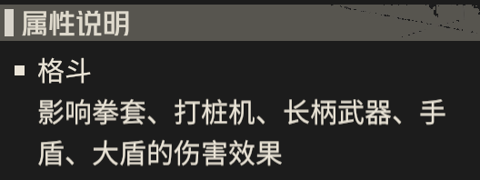 PS:这里稍微补充下格斗武器的概念,拳套和打桩机为单手格斗武器,同等级下一般以打桩机强度更优;长柄为双手格斗武器,一只手若被击毁,则部分技能便无法使用,且单手长柄的命中率会有大幅下滑;最后的手盾与大盾属于防御武器,其所具备的输出技能非常有限。