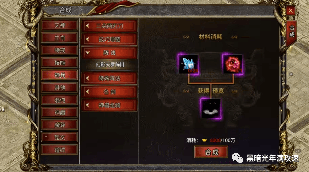想要带来斩杀效果的阵法,就可以选择普通阵法。普通阵法可以根据目标生命值斩杀一定比例的血量。在合成阵法时,需要阵法碎片,阵法碎片可在声望商城获得。