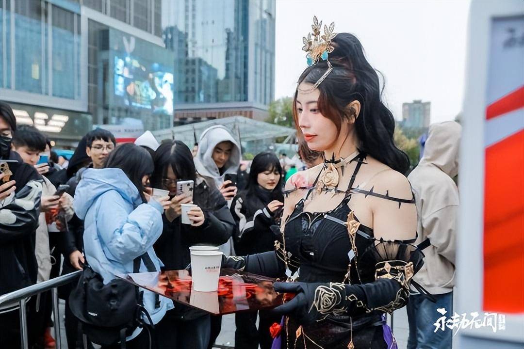 当然《永劫无间手游》线下试玩除了手游的表现让人惊喜,现场的环境同样非常有趣。虽然当天成都温度骤降,但是赶来现场试玩的玩家们依然排起了长龙,迫不期待的想要玩上这款“神秘”手游以及当面“狙击”制作组,官方也贴心的为排队的玩家带来暖心热茶驱散寒冷。