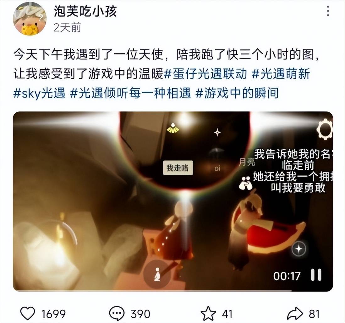 当然了,在双方玩家有爱的互动氛围驱动下,本次联动也凭借良好的社交反馈实现了破圈。#蛋仔光遇联动#、#光遇指引团集结#、#当光遇玩家帮助蛋仔萌新#等相关词条持续发酵,全网累计热度达到了3.5亿。而彼此游戏中的二创玩家们也十分高涨,根据活动体验创作的视频内容,围绕双方用户的交互瞬间和趣味打造了多样化的视频,在短视频平台触发病毒式传播。甚至于还涌现了一批趣味的短视频热词,如「在光遇遇到了心软的神」、「光遇玩家略微出手蛋仔恋爱脑」,展现了内容生态交融下的玩家情感流动,进一步推动此次联动的破圈效应。