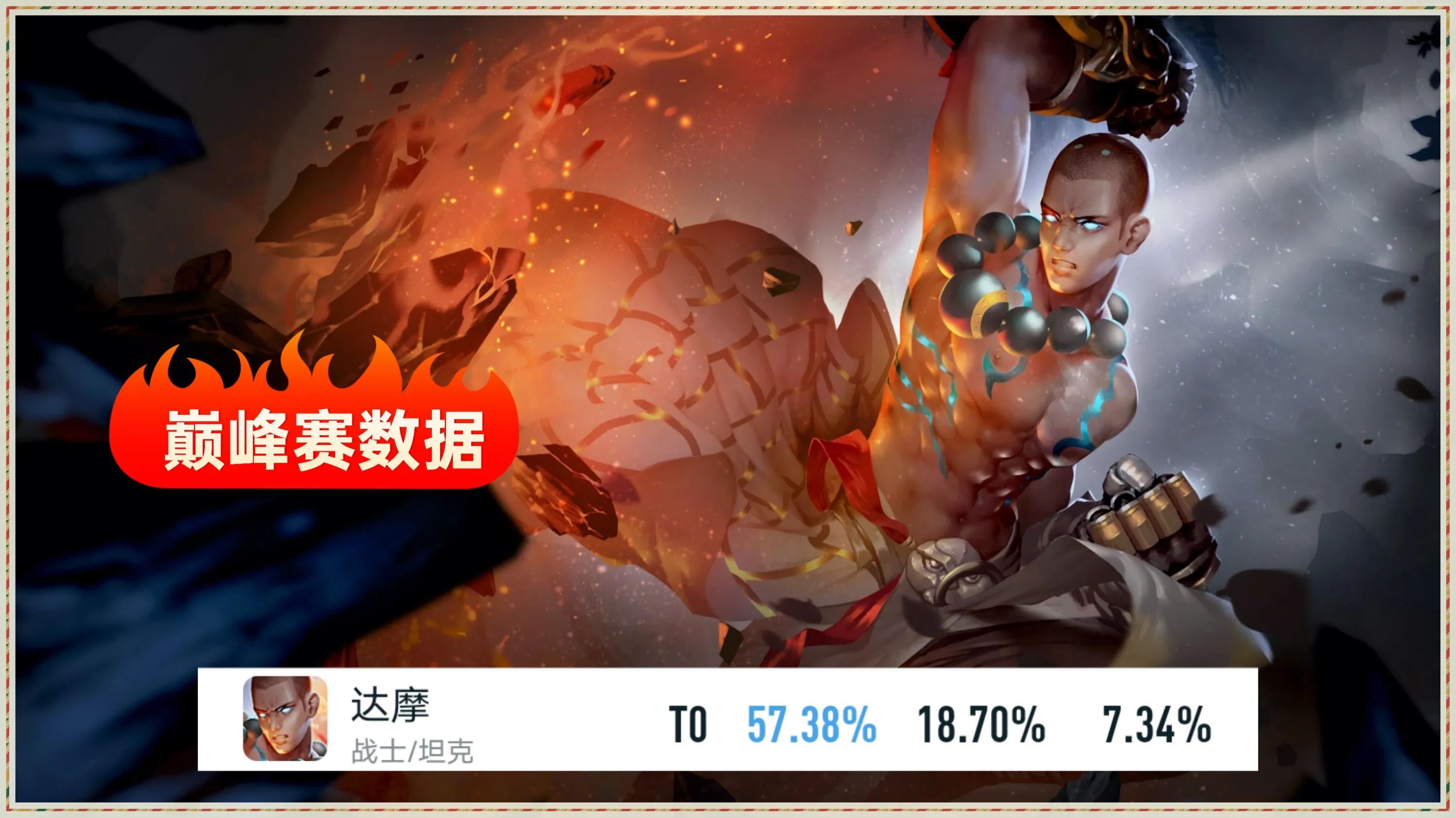 大家看目前达摩在巅峰赛当中的数据已经超过了57%,高达57.38%。