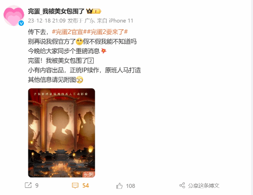 《完蛋!我被美女包围了2》为小有内容出品,为《完蛋!》的正统IP续作,由原班人马打造。