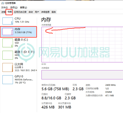 如果遇到APEX英雄下载不动/无法下载/下载失败,原因很可能在于电脑的存储空间不足,这会导致下载游戏时出现卡住不动/下载失败的情况。对于这种情况,玩家可以先打开任务管理器,然后点击“性能”,查看电脑内存,然后通过清理垃圾或删除软件的方式,为APEX英雄下载留足存储空间。