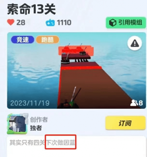 在这些照搬作者的地图简介中还能看到他们的离谱发言“下次做因蓝”,连作者都直接明言的抄袭,将原创作者的灵感创意当成自己的直接用,还借此获得了元梦官方诸多奖金收益。复制他人创意成果,月入过万,甚至还变成了他们炫耀的筹码。