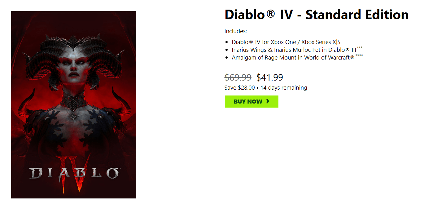 另外,暗黑系列的合集也在打折促销中,包括《暗黑破坏神2重制版》《暗黑破坏神3》《暗黑破坏神4》三款游戏,一起的售价为59.99美元。
