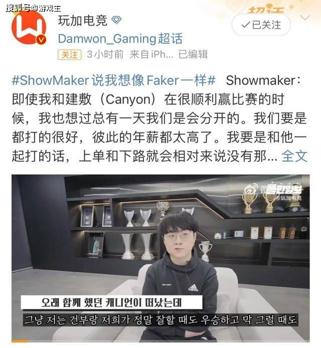大家好,英雄联盟S13赛季的比赛已经全部结束了,相信绝大多数的玩家都关注了最近一段时间的休赛期,lpl赛区的各大战队都已经完成了人员的调整。lck作为公认的世界第一赛区,最近的采访也是非常的多。Show maker是大家非常熟悉的一名中单选手,甚至在拿到了世界赛冠军之后,被大家称作是faker的又一个接班人,但是在这两年里,他的整体状态波动的非常严重甚至已经来到了lck中游的水准。就在最近,他也是接受了韩国媒体的采访,并且表示自己想和faker一样,在转会期的时候有过来lpl的想法,最后也是谈到了canyon的离队。