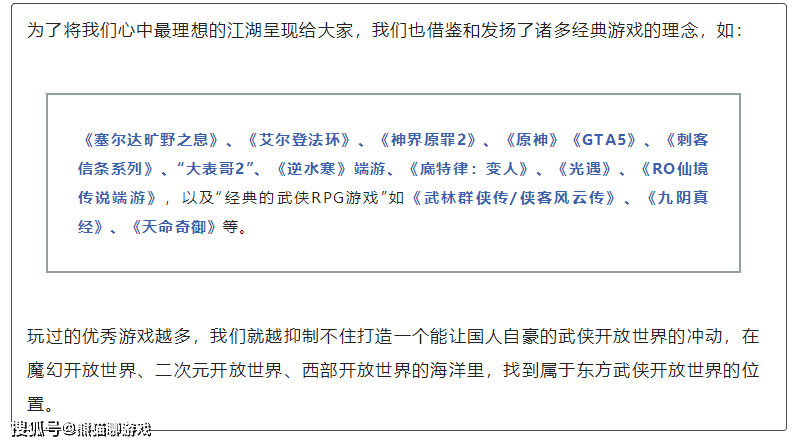 上线前,《逆水寒》手游就宣称自己缝合了15款3A,什么给他爱、底特律变人、老头环等等,借鉴经典游戏的理念,打造醇正东方武侠味儿。